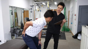 プロバスケットボール選手の方で、腰を痛めていて、少し曲げるだけで痛みが・・・