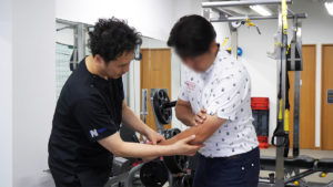 可動域などを確認します。身体の状態を より細かくみていきます。