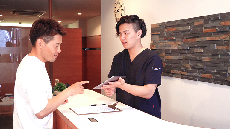 症状・原因のご説明、生活におけるアドバイスを行います。動作確認を行い、痛みの具合など、今後の施術プランなどご提案いたします。