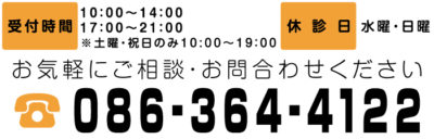 当院は事前予約制です。当日空いているお時間であれば予約可能となりますので、遠慮なくお気軽にお問い合わせ下さい。