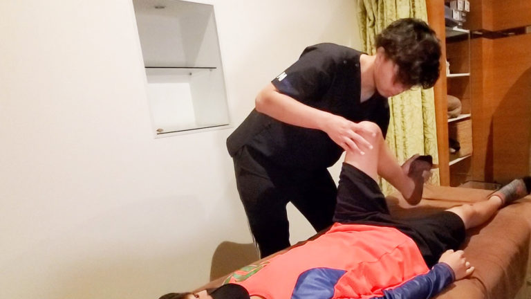 上記の他に、肉離れによる痛みもあるということで複数個所を診ました。この日は、お母様にもご来院、ご同席頂きました。