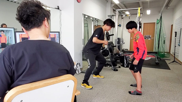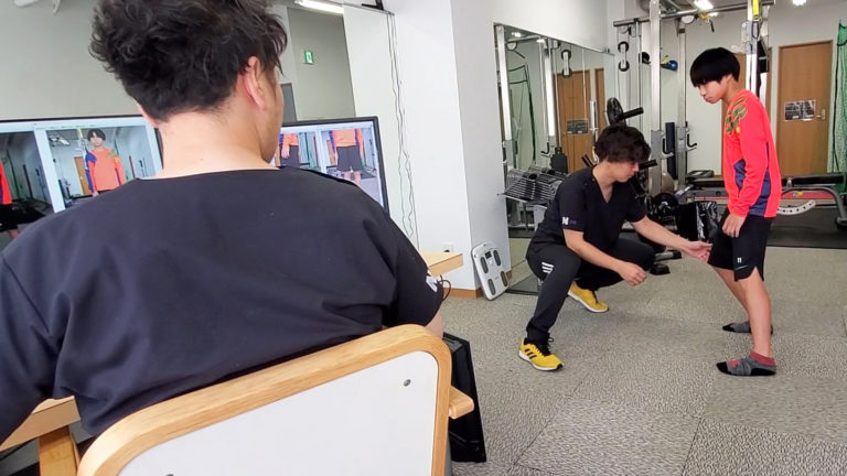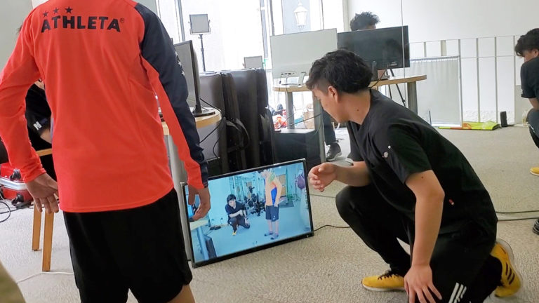 モニターなどを使用し姿勢やフォームなどの確認を行う場合もございます。
