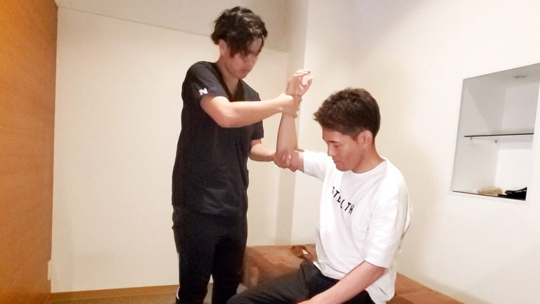 肩と肘2部位の施術を行っていきます。