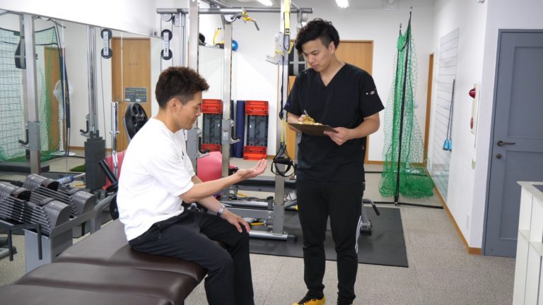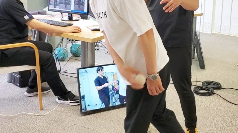 投球フォームを確認し、痛みの原因など詳しく診ていきます。
