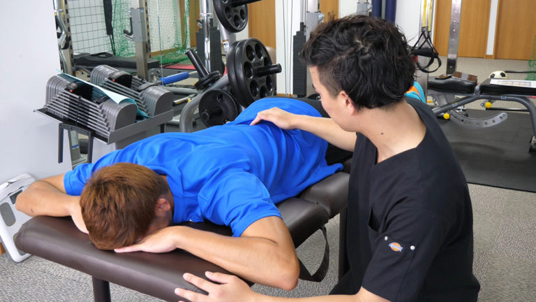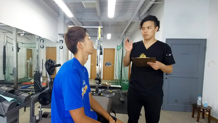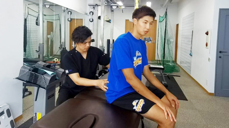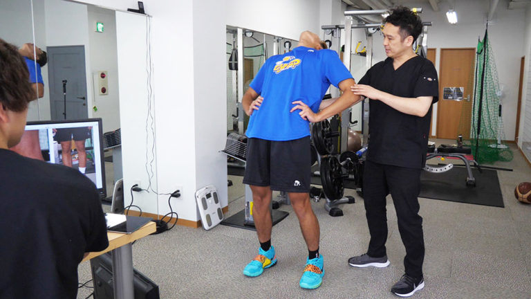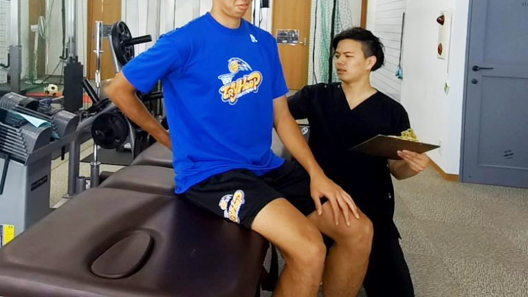 現役のバスケットボール選手がご来院されました。首から背中の痛みを訴えているので、発症時期や他の治療歴など、ヒアリングしていきます。
